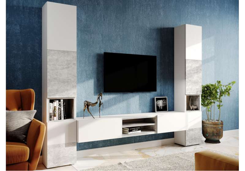 Стеллаж Лонгфорд белый / бетон светлый (40,2x30,4x217,6).