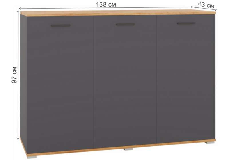 Комод Кассандра 138 дуб крафт золотой / антрацит (138x43x97)