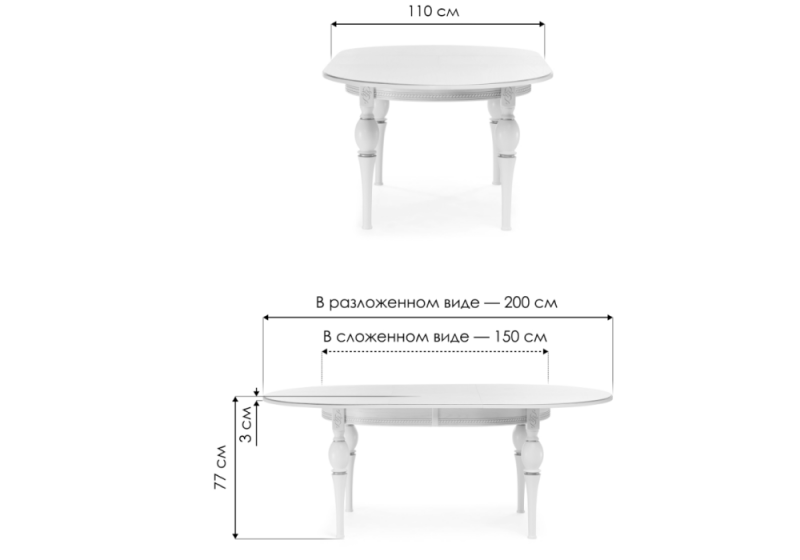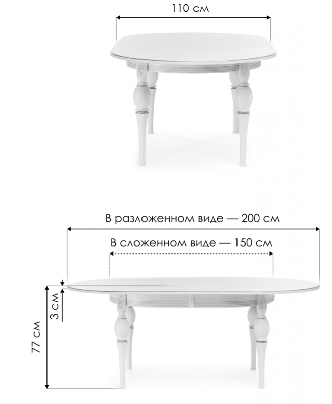 Длина стола в разложенном виде: 200 см.