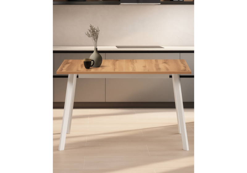 Стол деревянный Колон Лофт 120(160)х75 дуб крафт золотой / белый матовый (75x75).