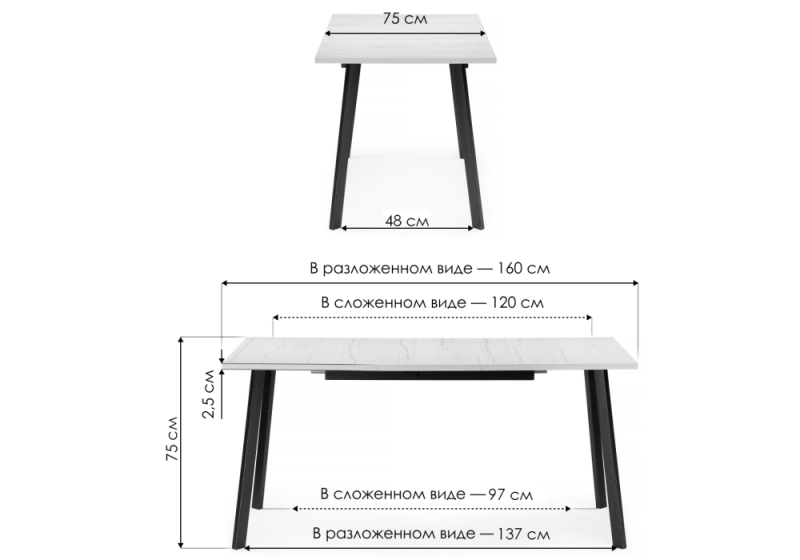 Стол деревянный Колон Лофт 120(160)х75 дуб крафт золотой / белый матовый (75x75)