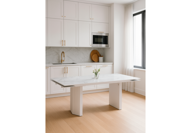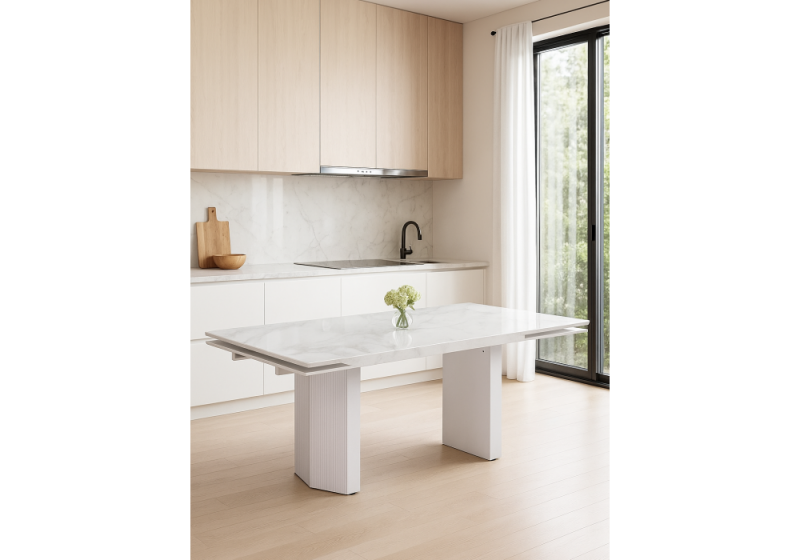 Стол стеклянный Монерон 200(260)х100х77 белый мрамор / белый (100x77)
