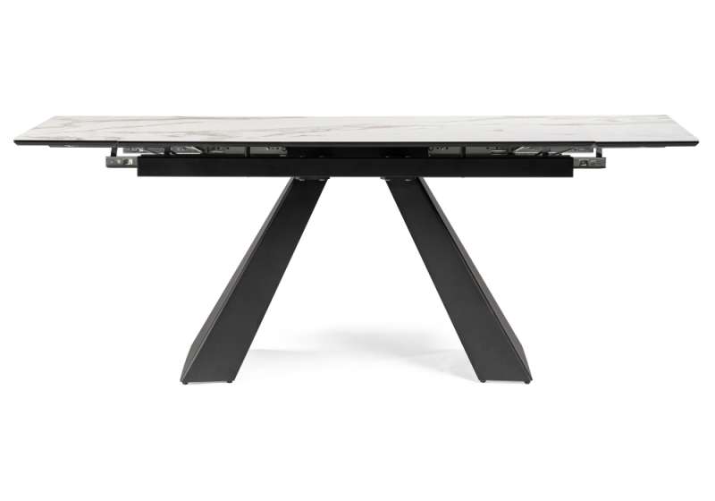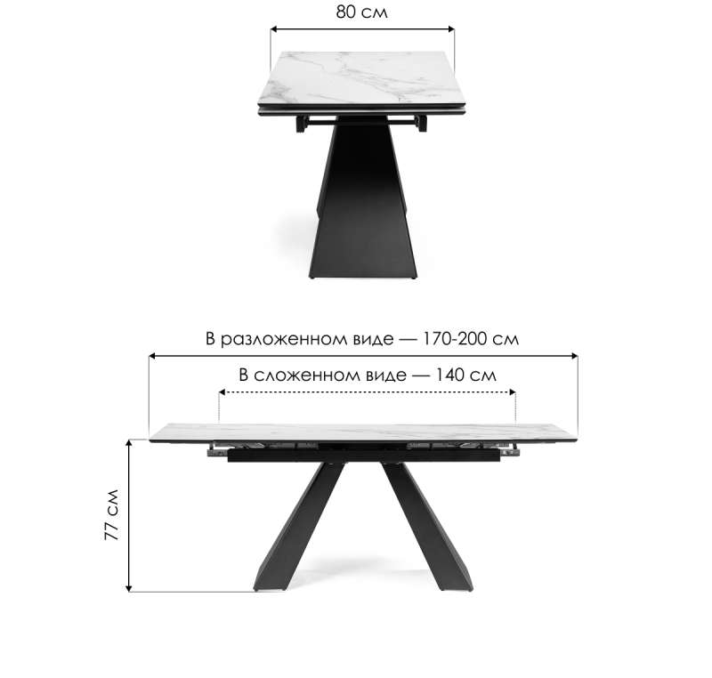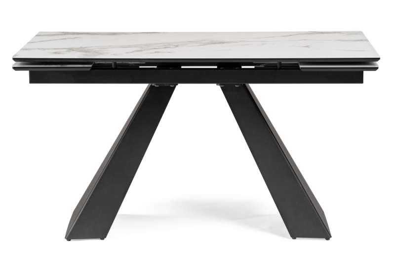 Стол стеклянный Торвальд 140(200)х80х77 белый мрамор / черный (80x77).