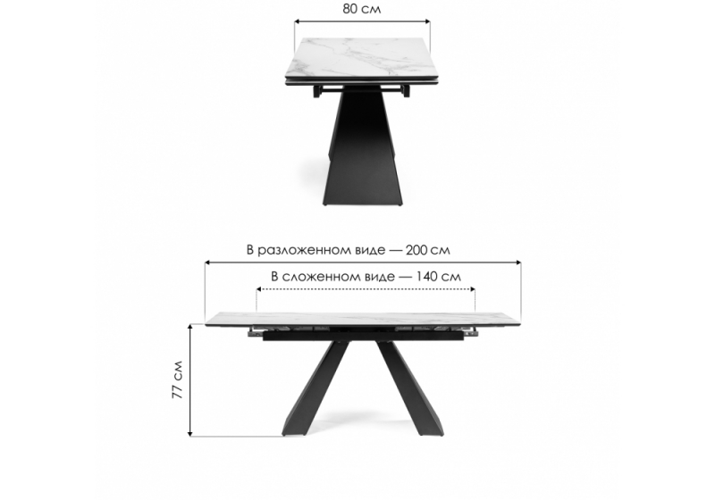 Длина стола в разложенном виде: 200 см.